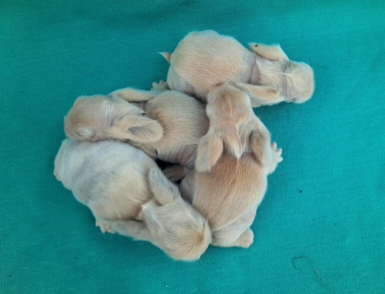 Am 23.03.2026 hat Selma 4 Babys von Amadeus bekommen. Es sind 2.2 Minilöwenwidder MM und Mm in havanna-japaner, feh-japaner und seperator.