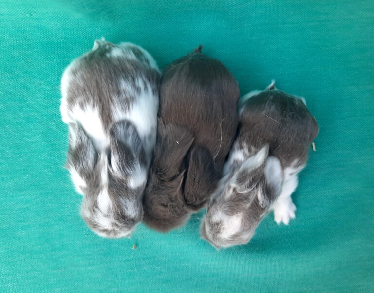 Am 15.01.2026 hat Malika 3 Babys von Merlin bekommen. Ein Baby hat die Geburt leider nicht überlebt und ein weiteres wurde beim Säugen aus dem Nest gezogen. Das verbliebene Baby wird von Amelie mit aufgezogen. Es ist eine Häsin Mm in feh MS.